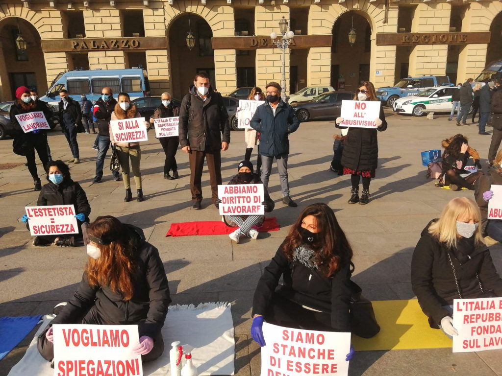 In piazza Castello per esprimere la solidarietà e il sostegno miei e del Gruppo dei Moderati alle estetiste che hanno manifestato per chiedere di poter tornare a lavorare. Questa categoria professionale, che pure garantisce standard igienici rigorosissimi (spesso di livello ambulatoriale: ma la politica dimostra troppe volte di non conoscere approfonditamente le realtà a proposito delle quali prende decisioni), è stata costretta a chiudere in queste settimane di secondo lockdown. Un danno aggravato dal fatto che la chiusura ha favorito chi ha offerto questo tipo di servizi abusivamente e in nero. Mi è stato riferito di gestori di categorie simili che, in queste settimane, hanno erogato servizi da estetiste nel retro dei propri saloni: ho chiesto alle manifestanti di farmi pervenire tempestivamente le segnalazioni relative a situazioni simili e mi auguro che, nel caso, controlli e sanzioni siano e siano stati immediati. Ora si permetta alle imprenditrici di questa categoria, con la “Zona Arancione”, di tornare in attività.