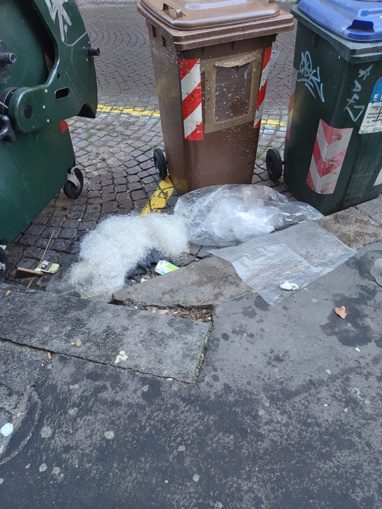 Rifiuti che si accumulano attorno ai cassonetti. Deiezioni canine ovunque. Chiazze di vomito sui marciapiede. Sedie, finestre e altri oggetti di grandi dimensioni abbandonati da settimane a bordo strada. Questa la situazione in Santa Giulia almeno dai giorni immediatamente successivi a Natale.